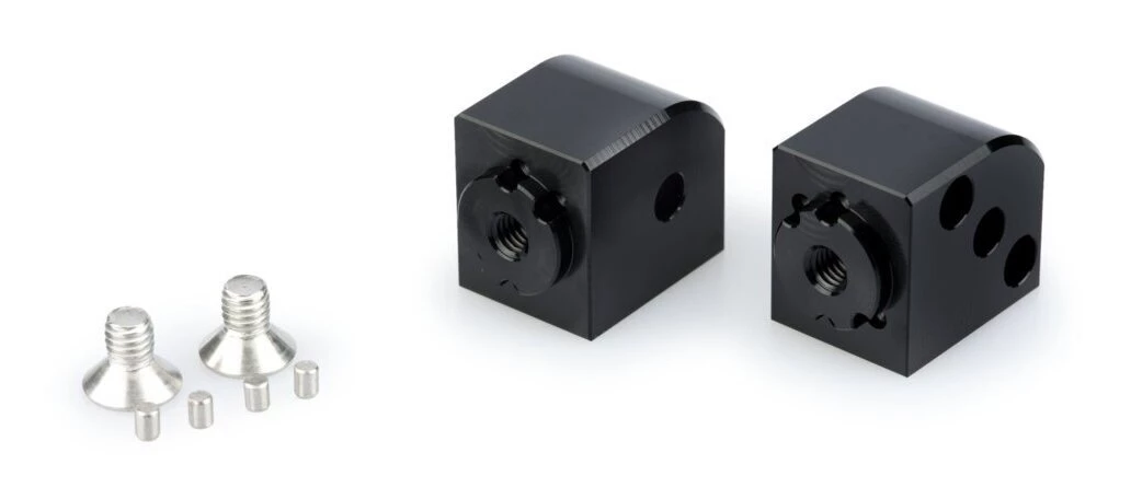 This adaptor allows offset of the footpegs from their original position on a 20mm radius in intervals of 15 degrees.