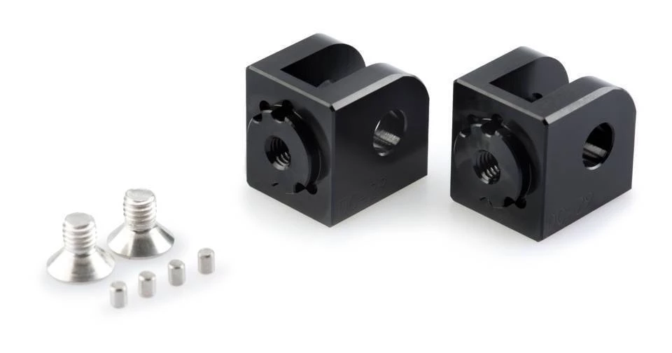 This 20mm adaptor allows offset of the footpegs from their original position and swivel 15 degrees to fine tune your footpeg adjustments.